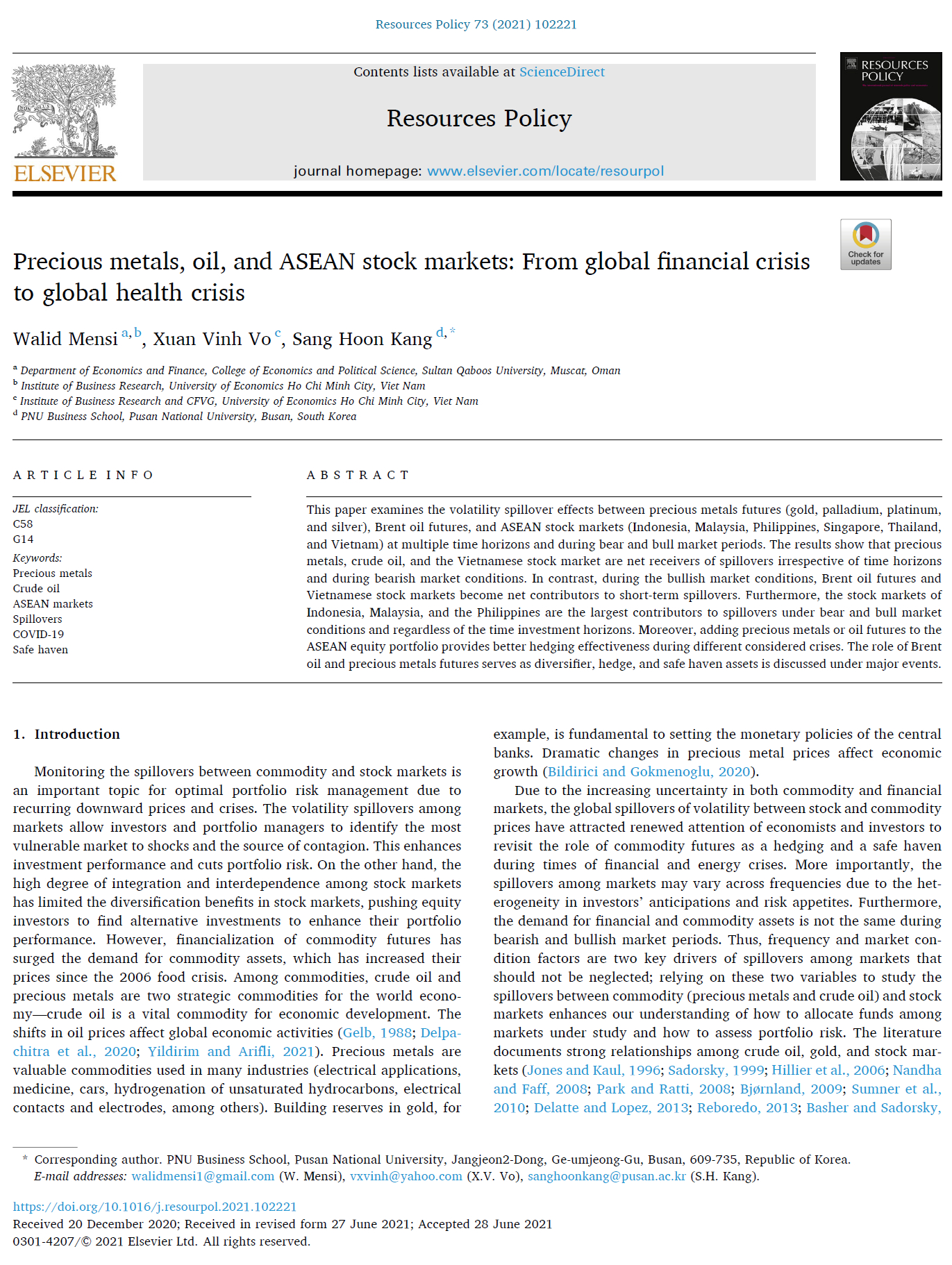 Precious metals, oil, and ASEAN stock markets: From global financial crisis to global health crisis