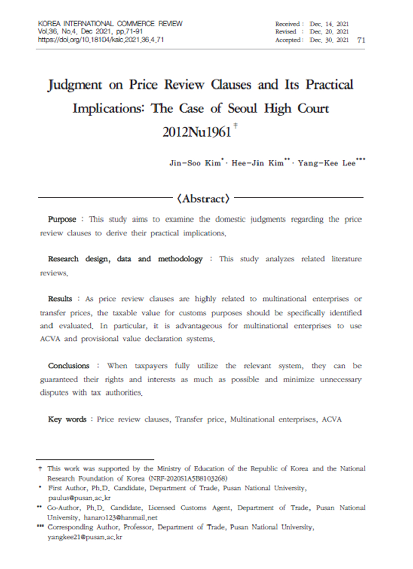 영 문 | Judgment on Price Review Clauses and Its Practical Implications: The Case of Seoul High Court 2012Nu1961 | |||